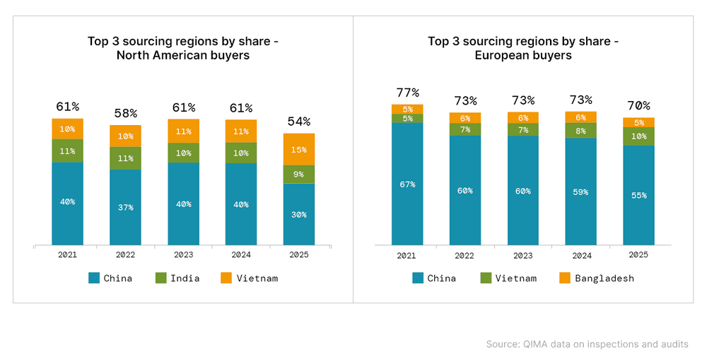 QIMA’s data on inspections and audits shows that both buyers and suppliers took active steps to diversify their networks and reduce risk in 2025, a trend that’s likely to continue into the coming year.